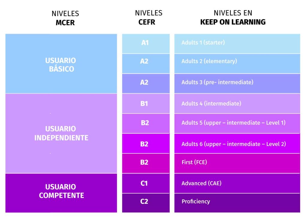 Todos nuestros cursos online se rigen según los siguientes niveles internacionales y equivalencias.